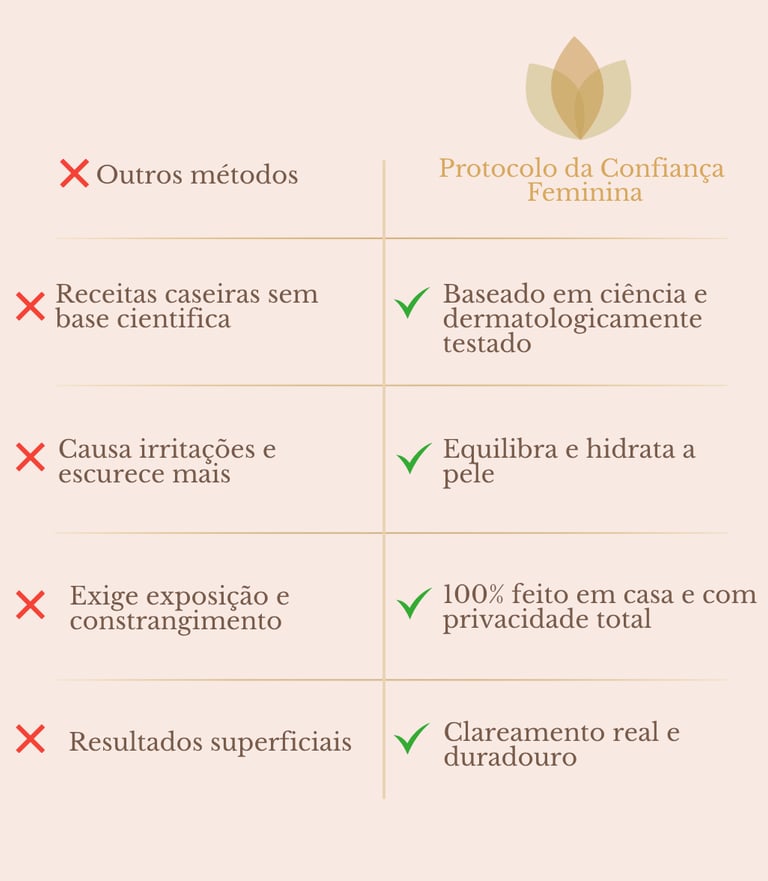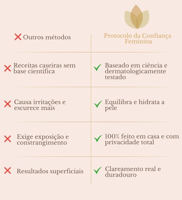 O Protocolo da Confiança Feminina foi criado para clarear de dentro pra fora, atuando nas três causas que impedem sua pele íntima de clarear naturalmente.